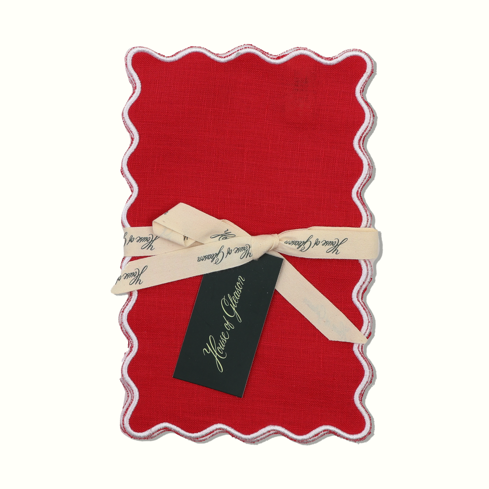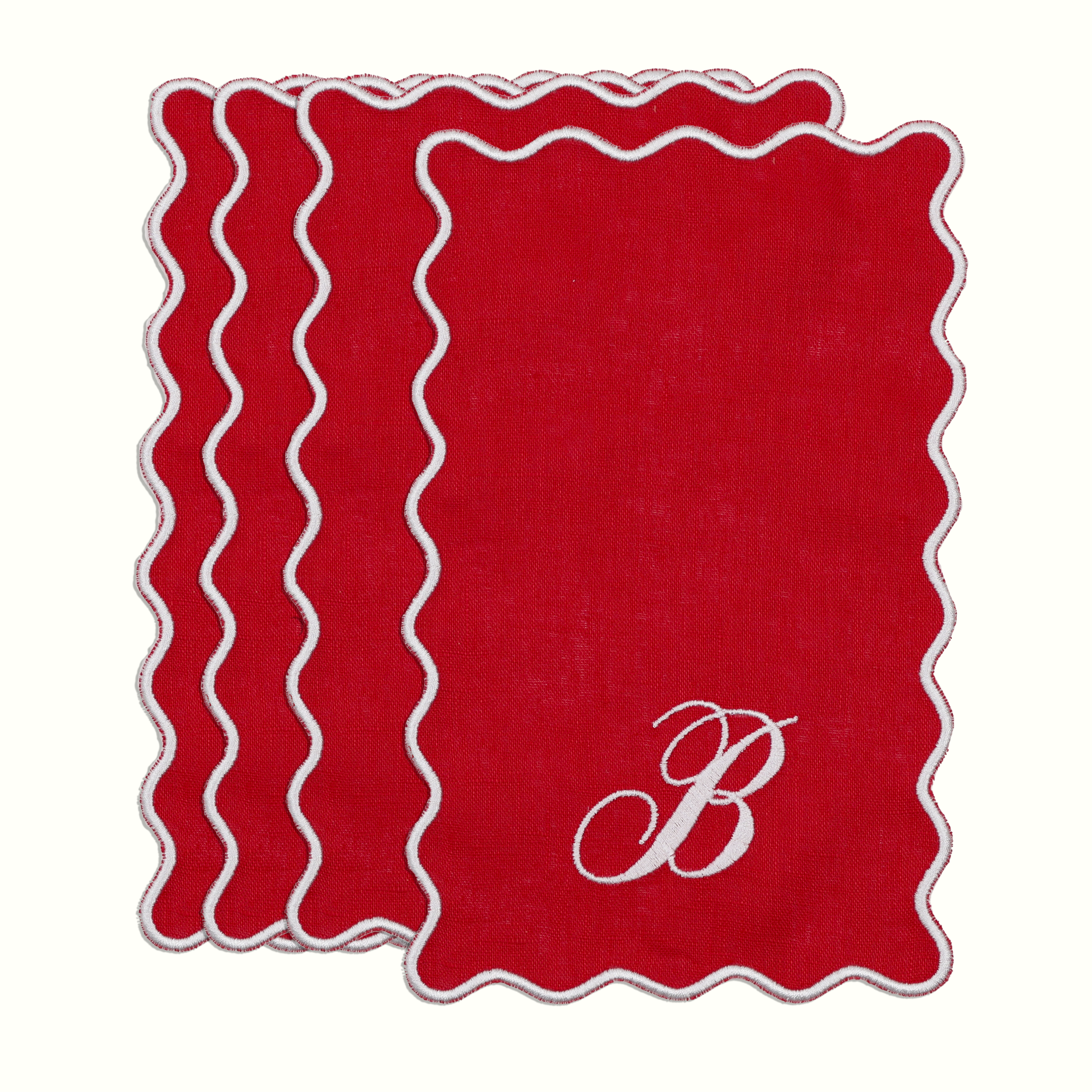 The Vivienne Rectangle Cocktail Napkins - Red & White